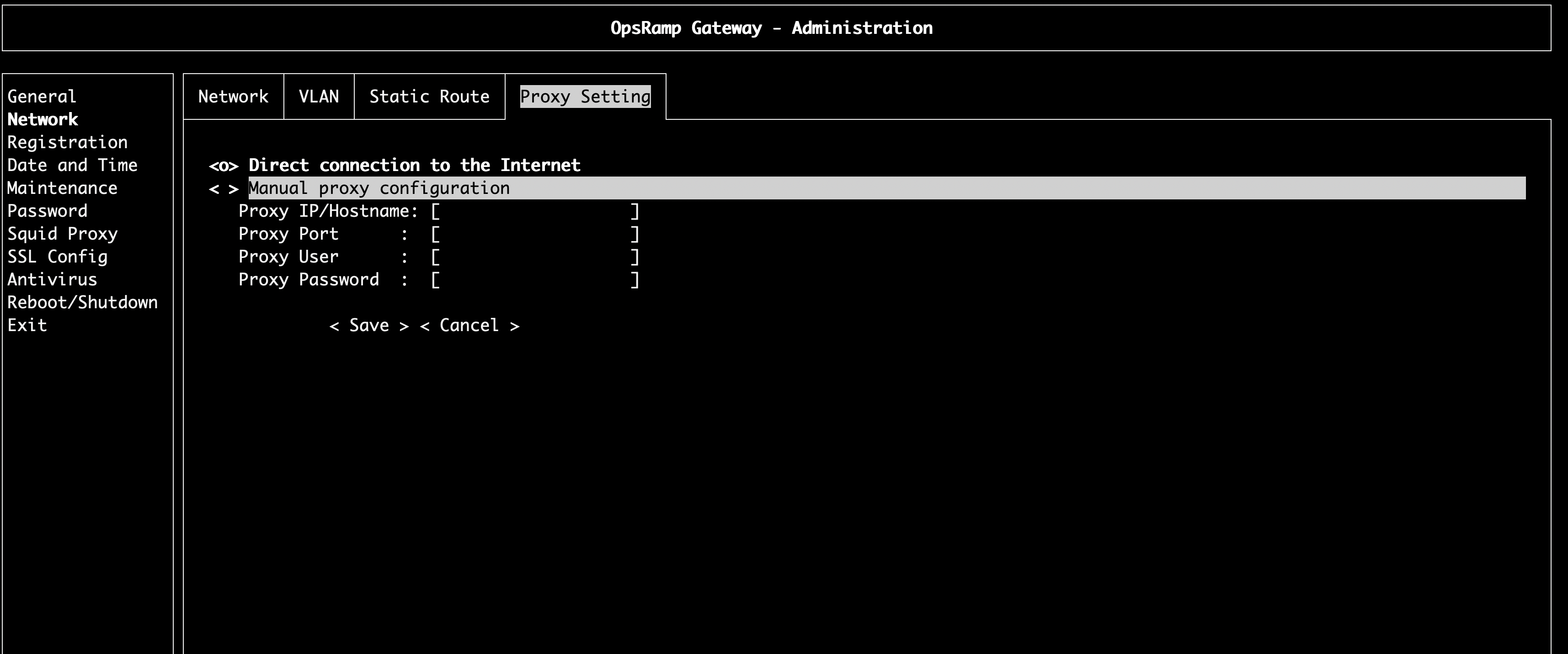 https://<gatewayIPAddress>:5480. - After logging into the gateway VM, launch the Administration Console using the following commands: