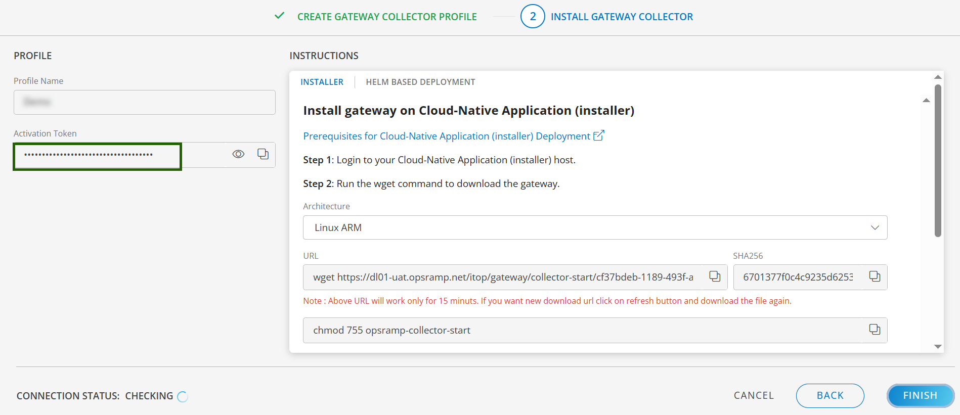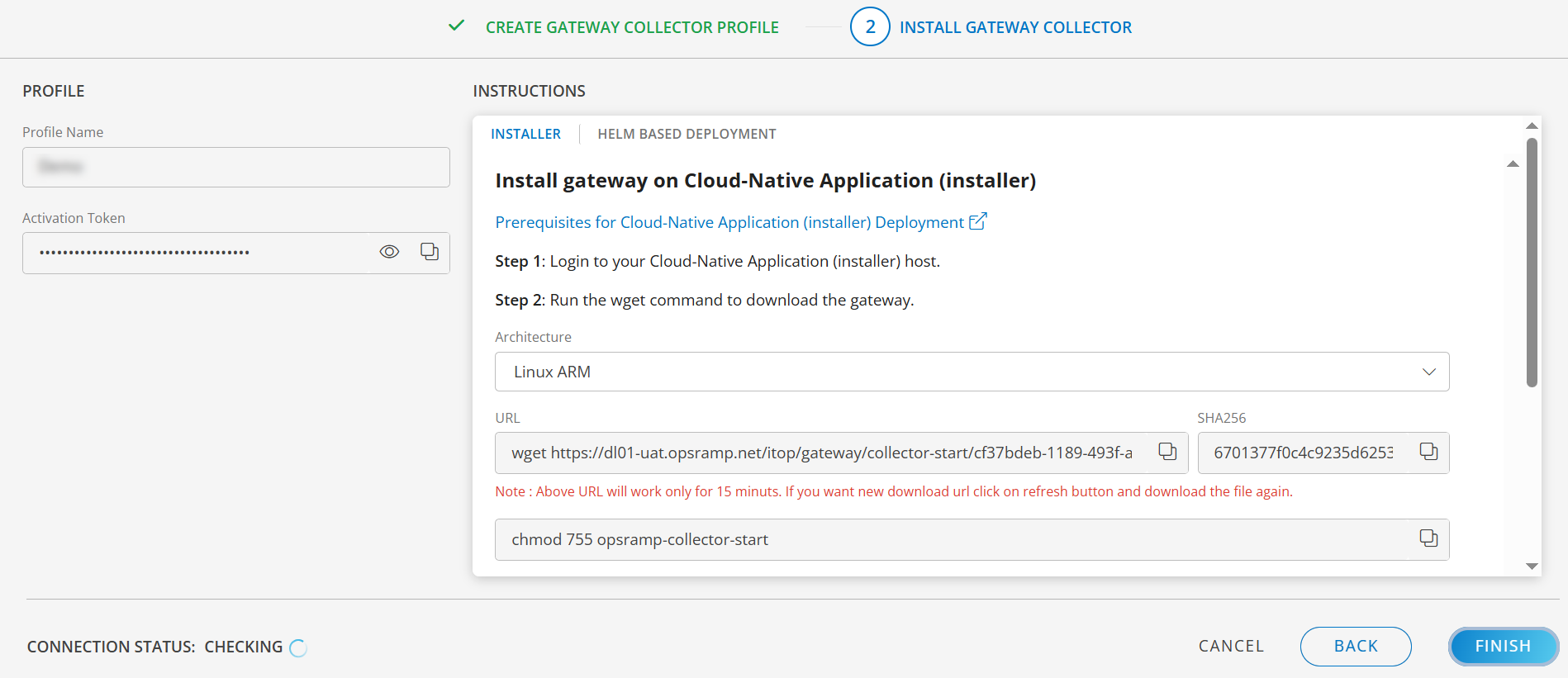- Run the wget command provided on the instruction page to download the Gateway. The command varies based on the selected architecture.