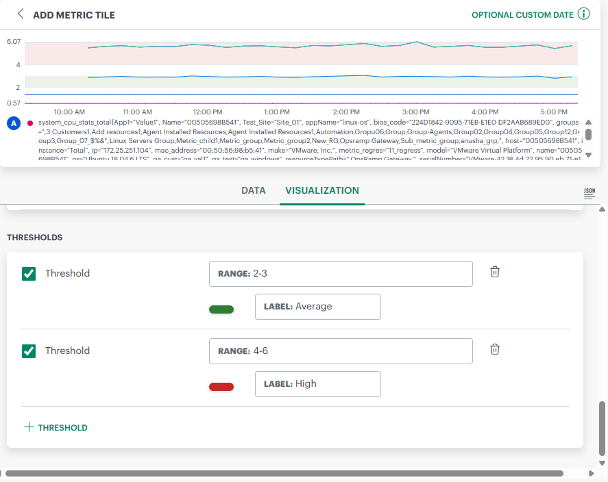 Note: When creating a custom attribute value (in the Setup > Custom Attributes page), select the Metric Label checkbox. Only then the custom attribute will be considered as a label for the resource metrics.