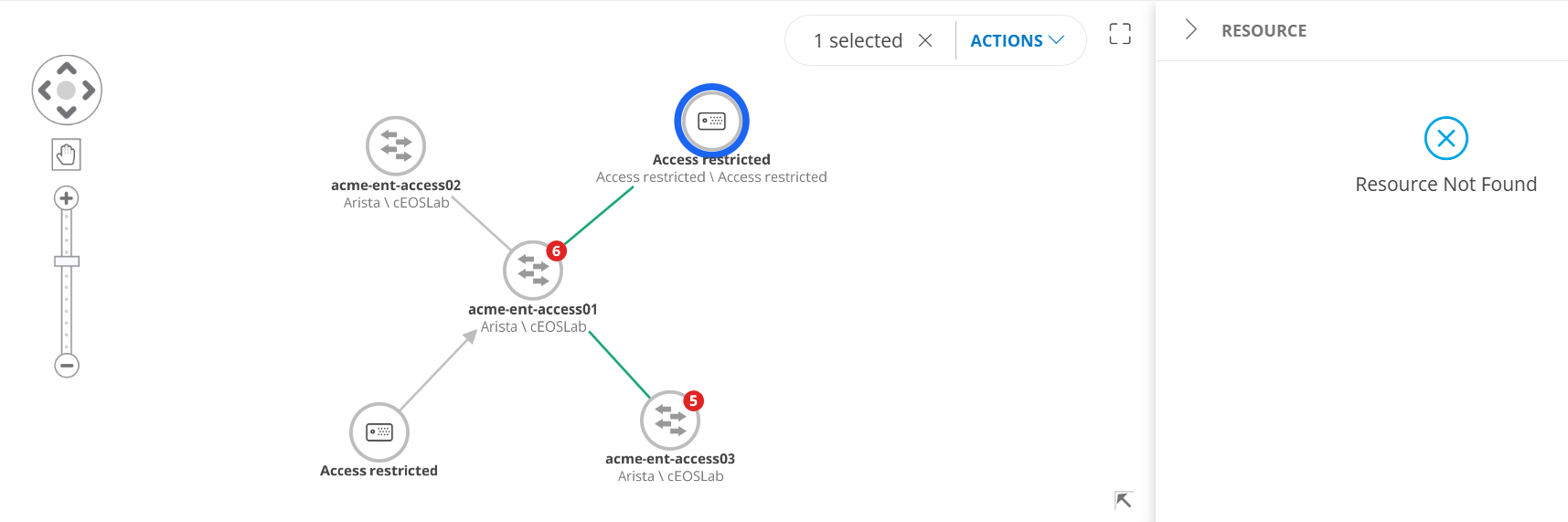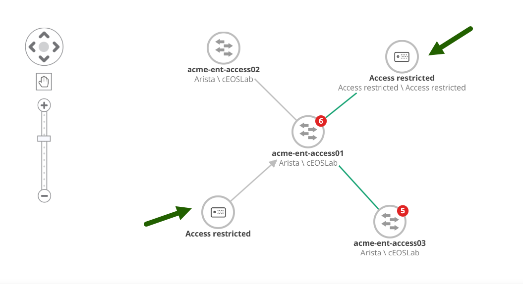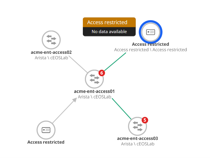 - If restricted resources have visible relationships or links, the nodes remain visible but their values are replaced with “Access Restricted”.