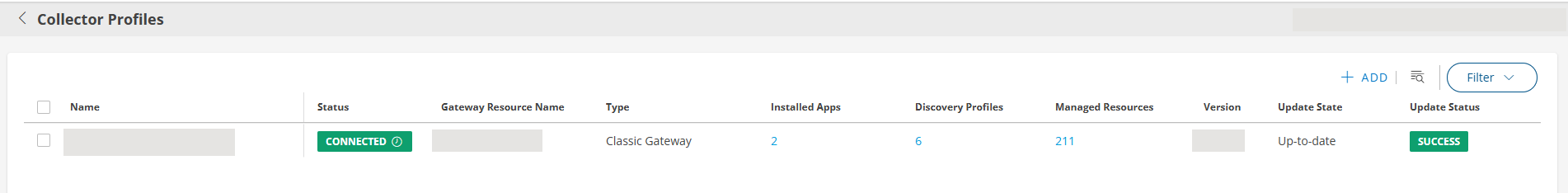 - Navigate to Setup > Accout > Collector Profiles to confirm the Gateway is connected.