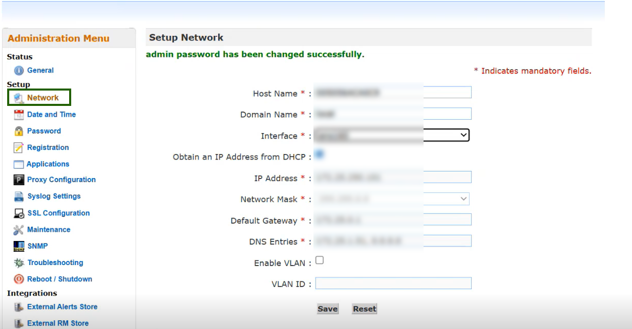 In the Appliance Administration Panel, navigate to Administration Menu > Network.