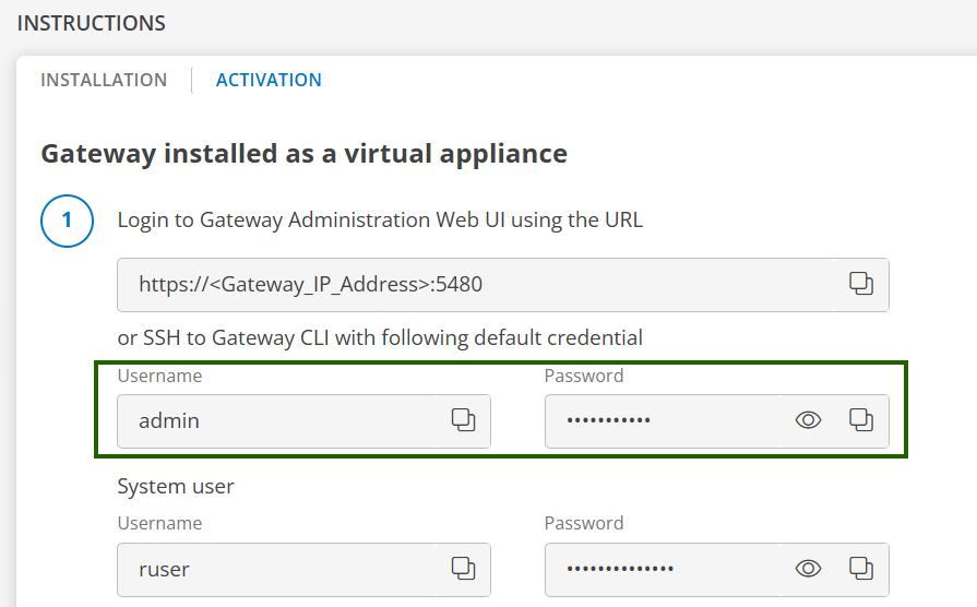 When accessing the Gateway Admin UI for the first time, you will be prompted to change the password immediately.