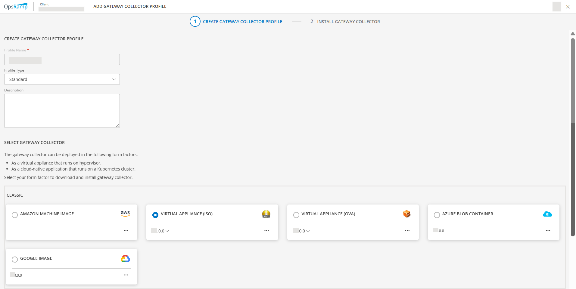 - Gateway Collector: Select one of the image options for Classic Gateway.