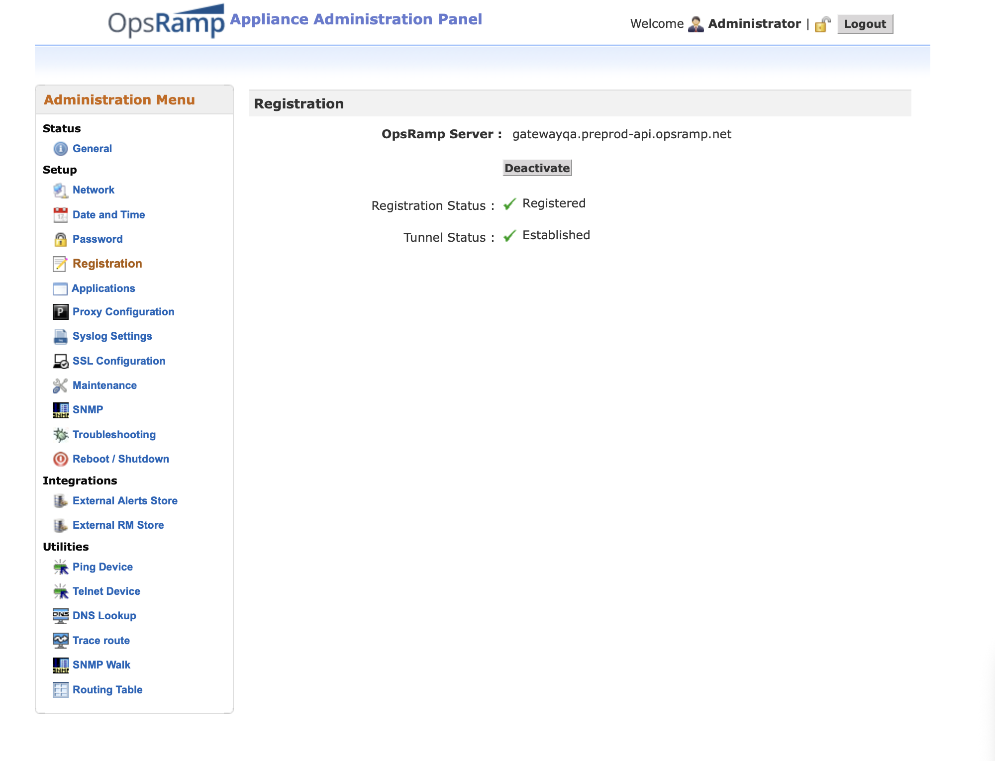 - Click Activate. This activates the Gateway registration.