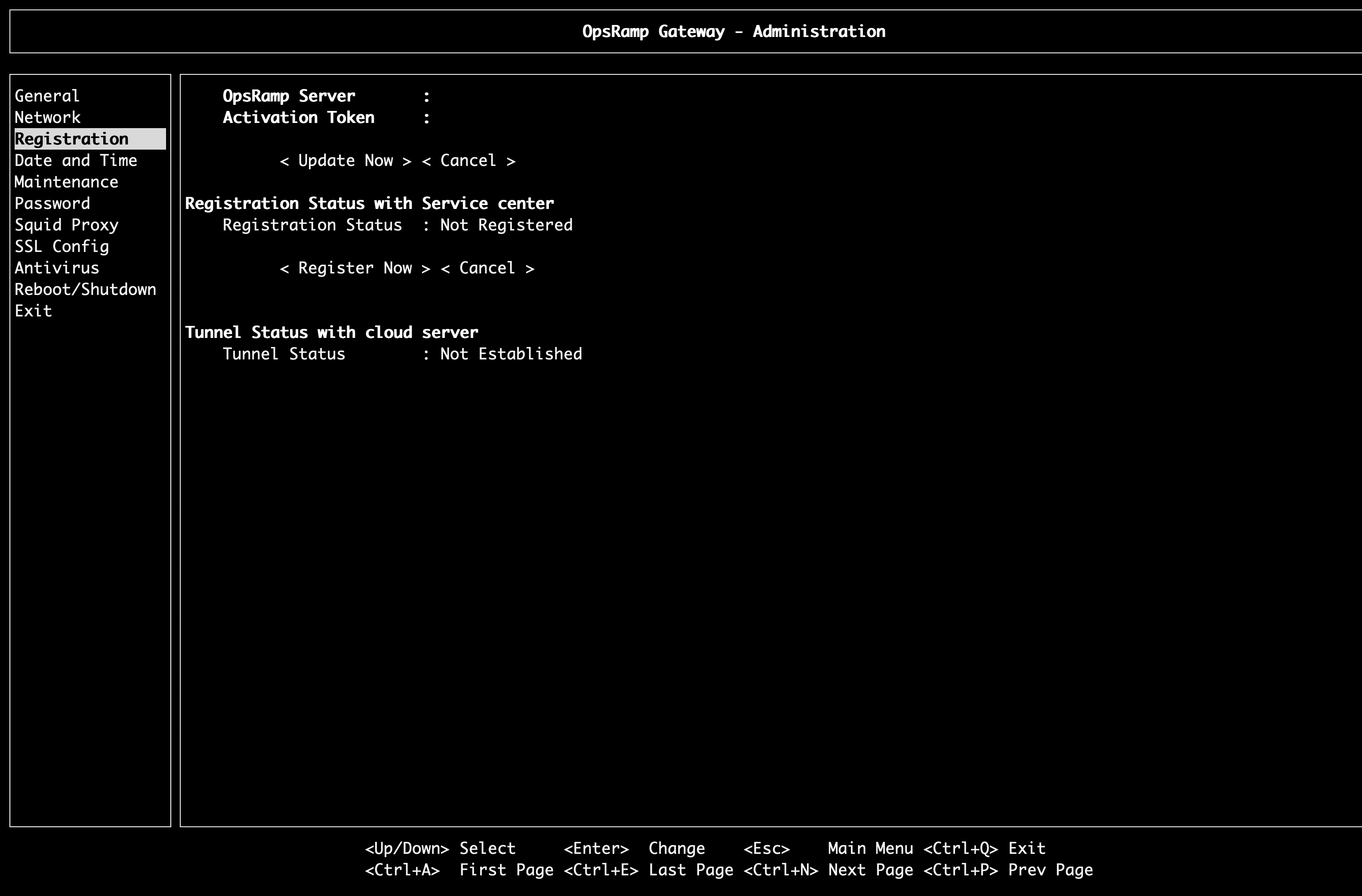 Enter the Activation Key and OpsRamp Server details in the registration screen.