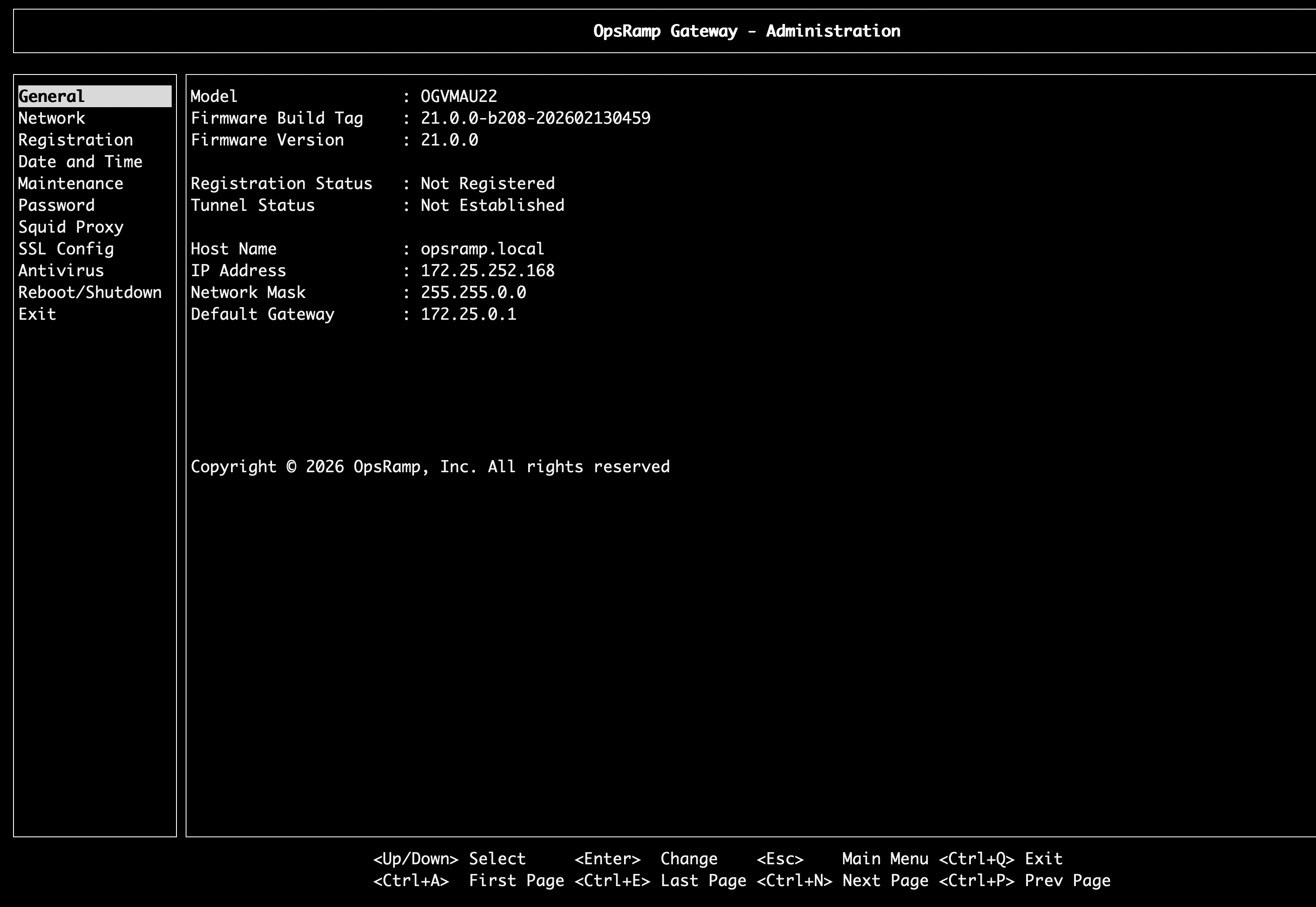 Log in to the gateway CLI via SSH using your username and password available in the OpsRamp portal under Setup > Account > Collector Profile.