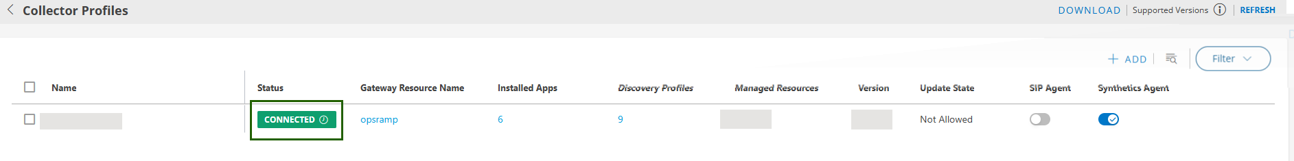 Once the the registration steps are completed, you can verify the gateway registration sucess. In the Collector Profile page, the status of the successfully registeretd gateway displayed CONNECTED.