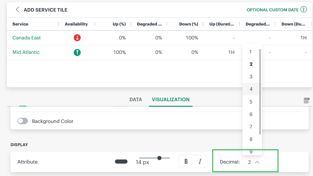 Added Ability to Configure Decimal Places to for Up Time (%) and Down Time (%) in Service Tile Enhancement