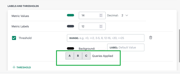 In the Metric Tile with multiple queries, users can now define explicit thresholds and the unit of the metric per query instead of a common value for all queries.